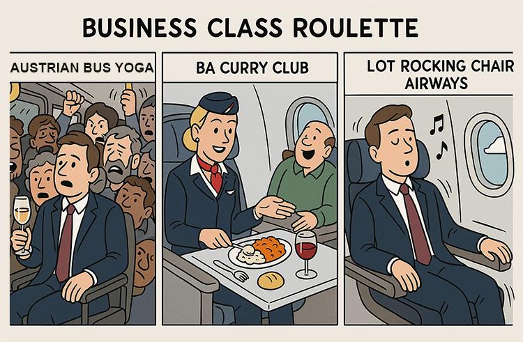 Mitzilinka-Business Class Roulette: Austrian Bus Yoga, BA Curry Club, and LOT Rocking Chair Airways