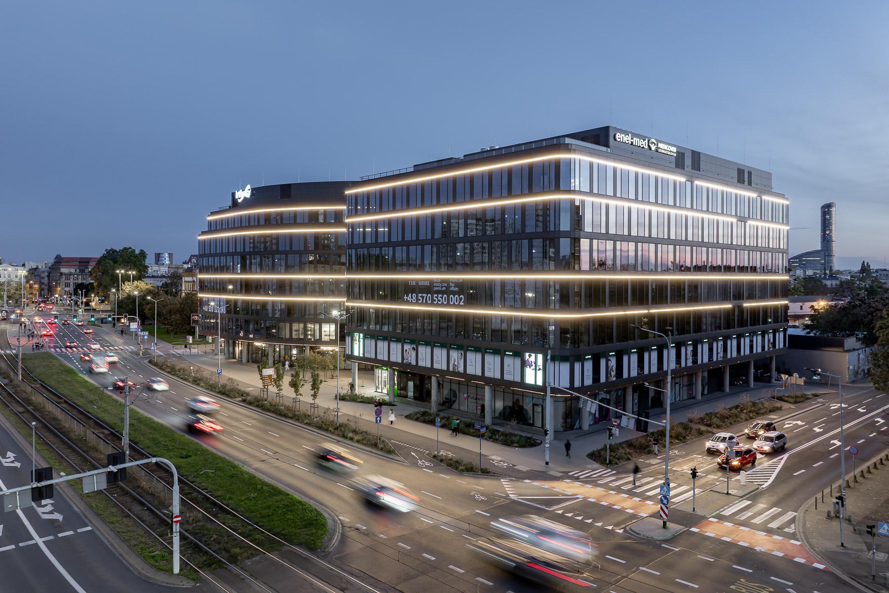 In Wrocław, the Infinity building offers approximately 22,000 m² of premium office space. Completed in 2023 in partnership with Alchemy Properties, the building hosts tenants such as Avenga, Divante, NATEK, coworking operator The Shire, and ground-floor retail and service businesses.