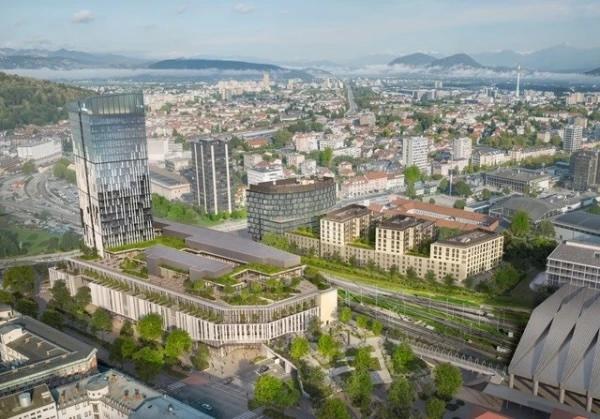 The southern section will include a 100-metre office tower, a shopping centre, a hotel and several levels of underground parking. Building work is due to begin this month, with completion planned for late 2027. Once finished, the tower will become Slovenia’s tallest office building, transforming the city’s skyline and anchoring a new urban district beside the station.